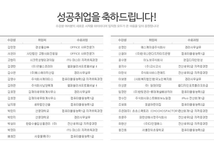 [성공취업] 2014년 9월 성공취업자 소식