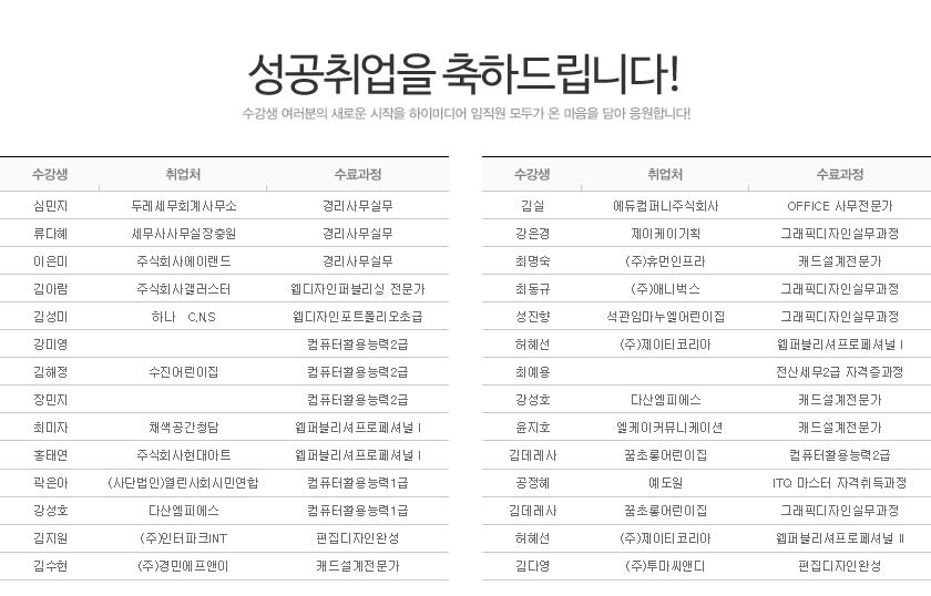 [성공취업] 2014년 10월 성공취업자 소식