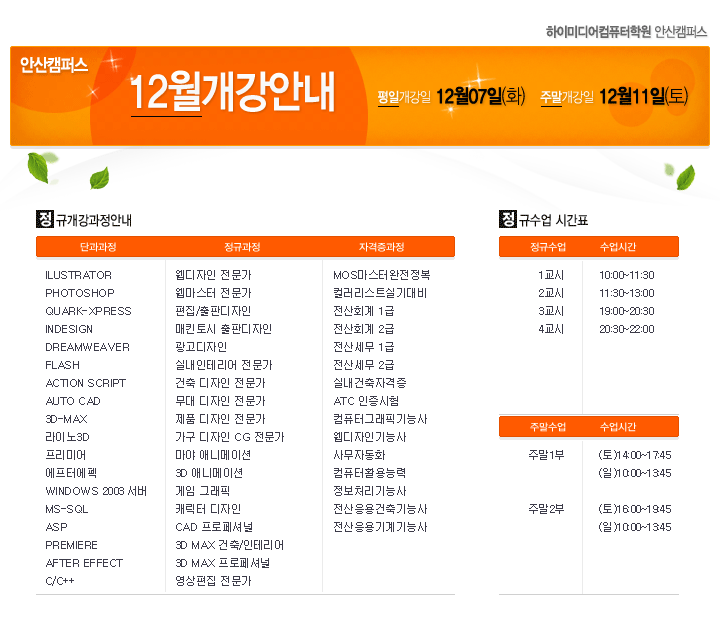 [정규개강] 2010년12월 안산캠퍼스 정규개강안내