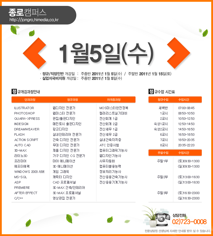 [정규개강] 2010년 1월 정규개강안내