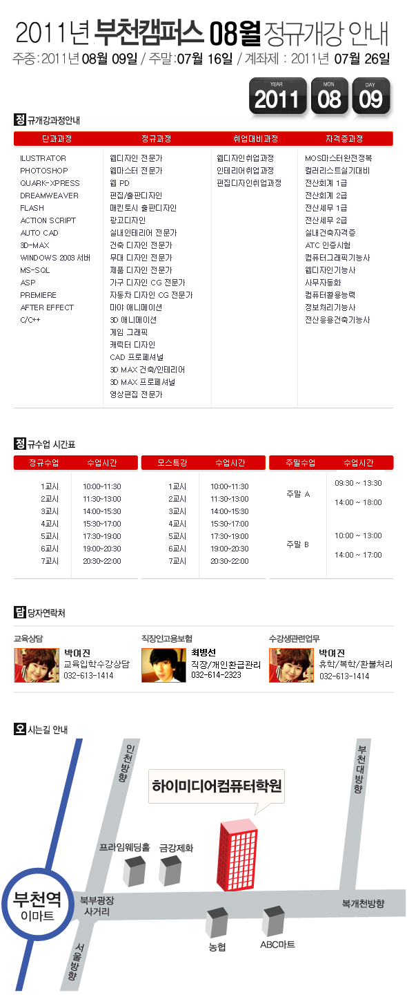 [정규개강] 2011년 08월 부천캠퍼스 개강안내